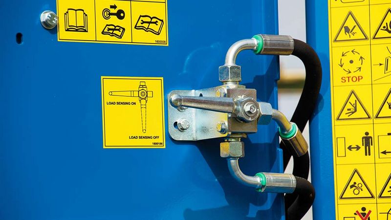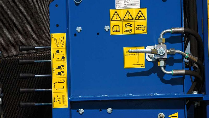 The standard hydraulic "Load Sensing" control system automatically adjusts the oil volume to consumption. This control system, thereby, not only performs several functions simultaneously, it also reduces fuel consumption at the same time. This results in a greater bale output per hour. The machine can also be operated in conjunction with tractors without load sensing pump.