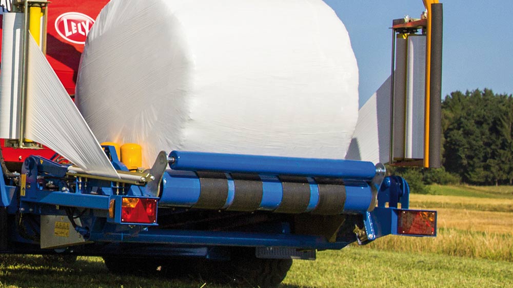 The twin wrapping arm is equipped with two 750 mm film stretching units. Three patented plastic rollers each provide for uniform stretching. What is more, the rollers are not sensitive to temperature. This helps save film and guarantees firmly wrapped bales. The stretching units are height-adjustable. This ensures that the bales will always be wrapped perfectly around their own center. The quick-release system makes it possible to change empty rolls quickly and effortlessly. The film monitoring unit will cut off the wrapping process if the film runs out or tears.
