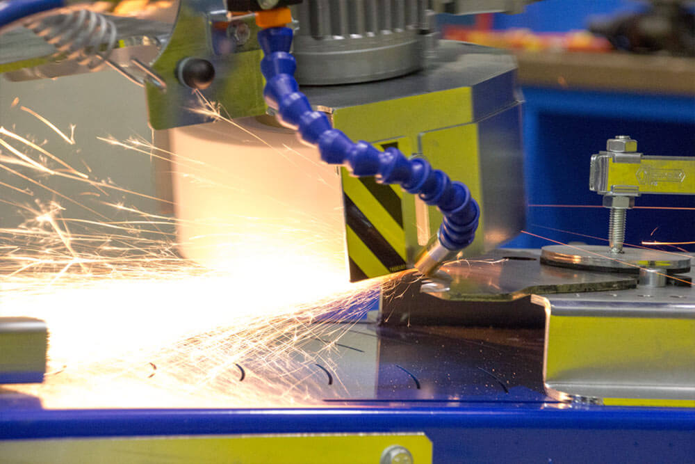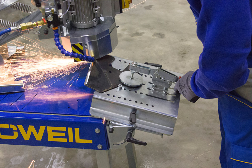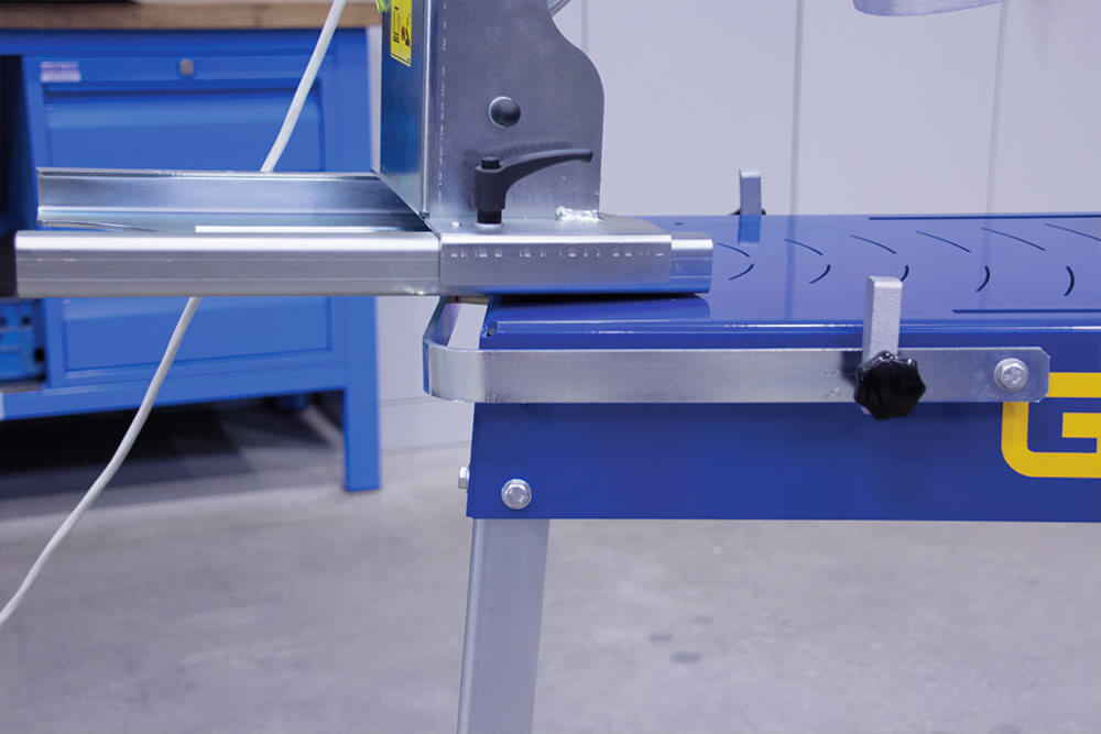 The GÖWEIL blade sharpener can be used to sharpen both curved and straight blades with no effort and in a quick and easy manner. The pitch and length of the sharpener can be adjusted individually and are infinitely variable. This level of flexibility makes it possible to effortlessly sharpen blades whose radius is rather tight. The lateral rotation limiters prevent sharpening beyond the edge of the blade. The most commonly used radii are already preset on the table of the MS 100, allowing the operator to find the correct position more easily.