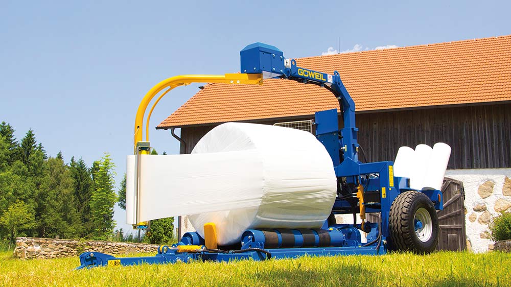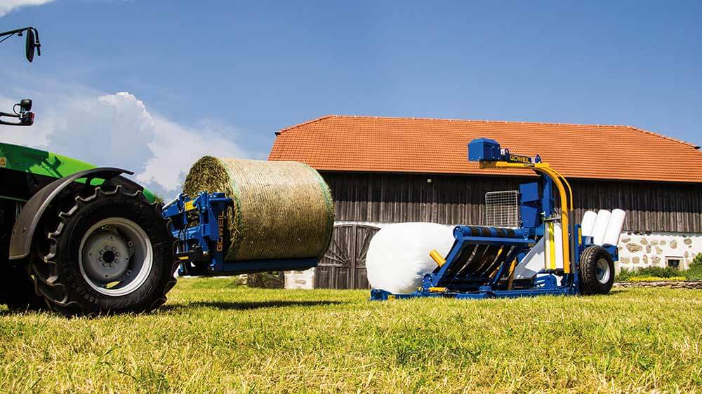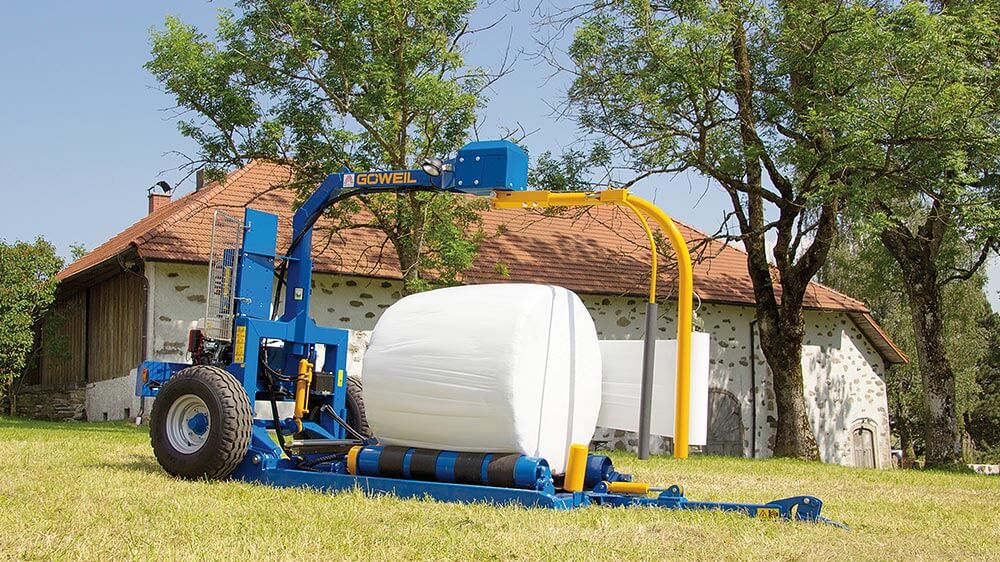 The low profile as well as the robust and solid construction and workmanship of the wrappers guarantee an exceptionally long lifetime. The conveyor belts and the two rotating bale guide rollers guarantee that the bale will continually move forward and, consequently, ensure a uniform overlap of the film.