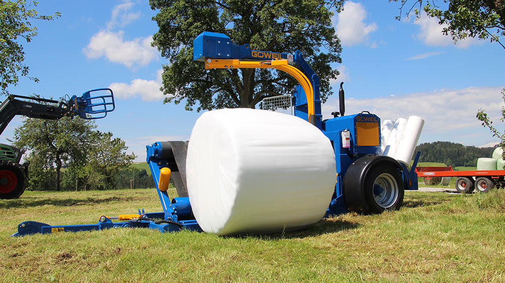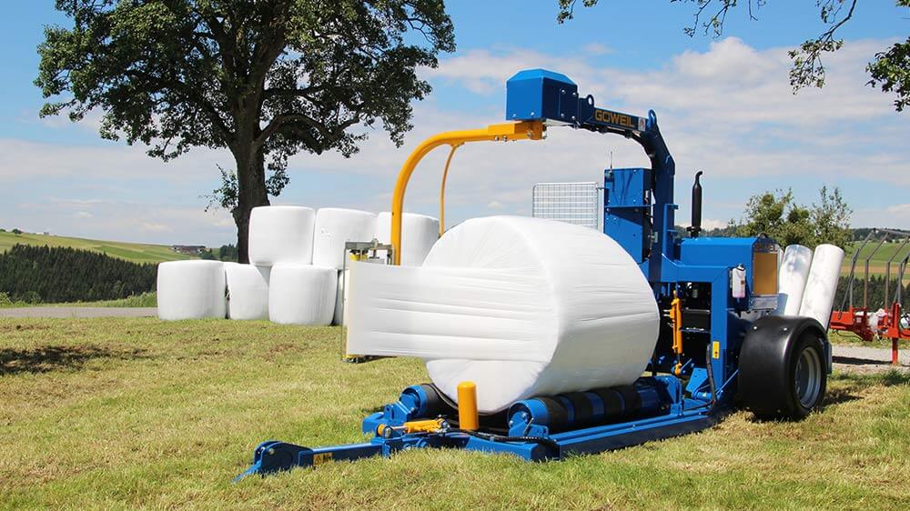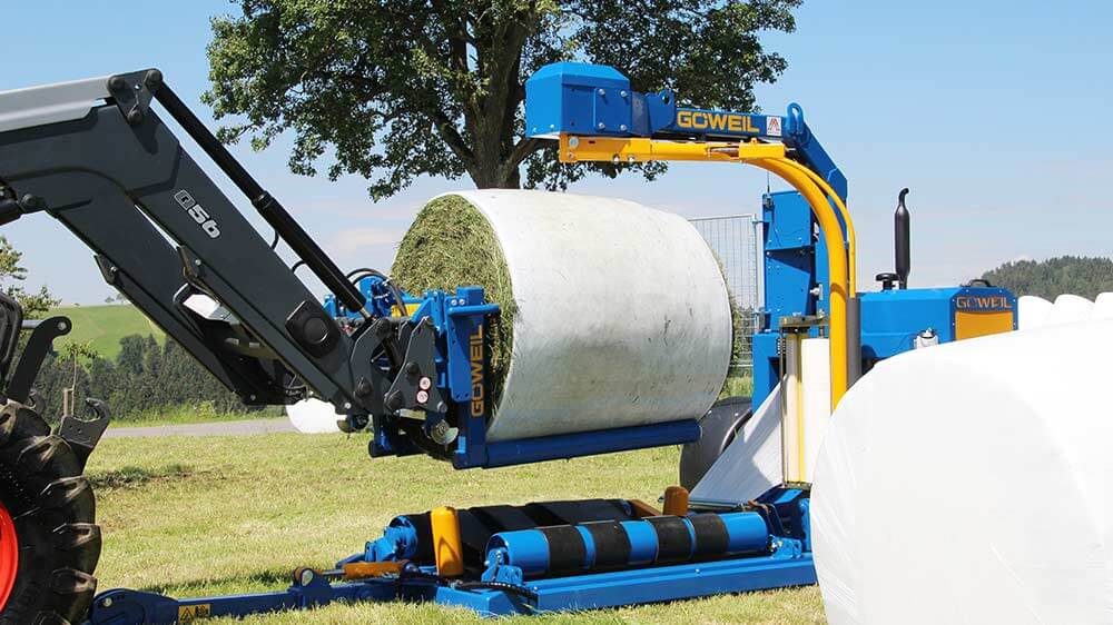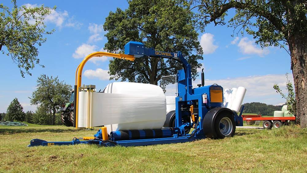 The low profile as well as the robust and solid construction and workmanship of the wrappers guarantee an exceptionally long lifetime. The conveyor belts and the two rotating bale guide rollers guarantee that the bale will continually move forward and, consequently, ensure a uniform overlap of the film.