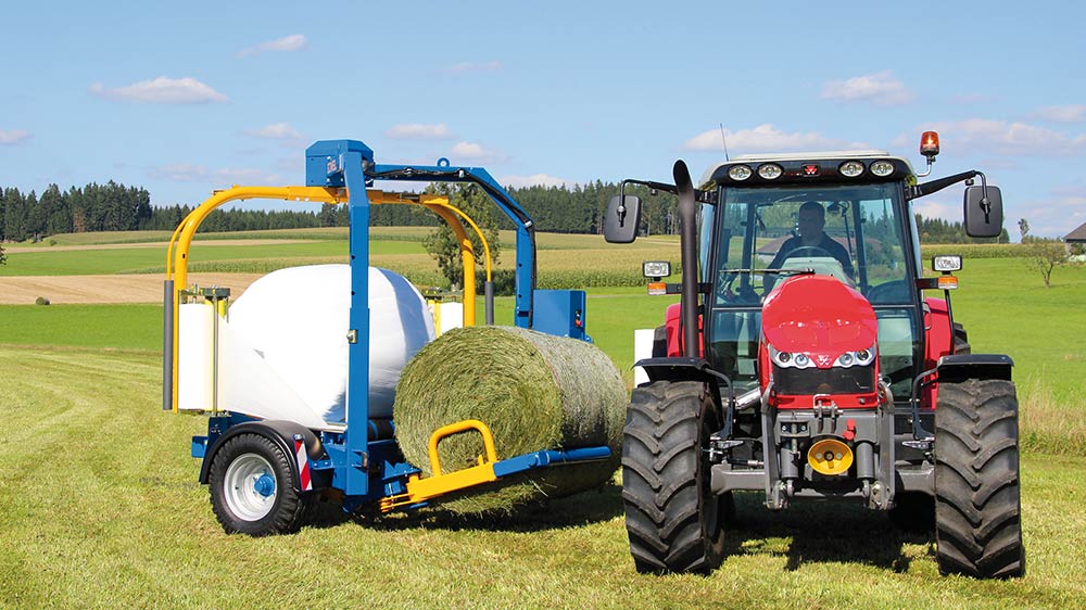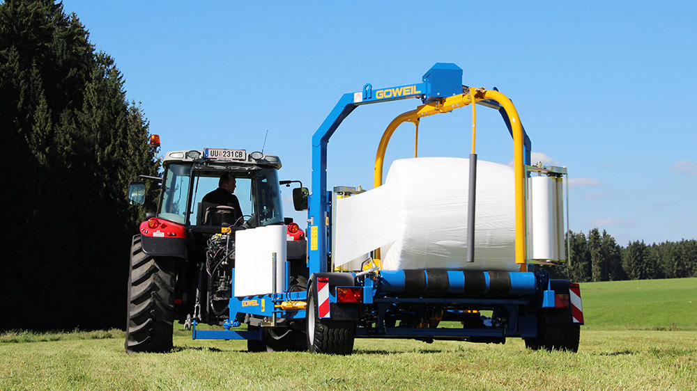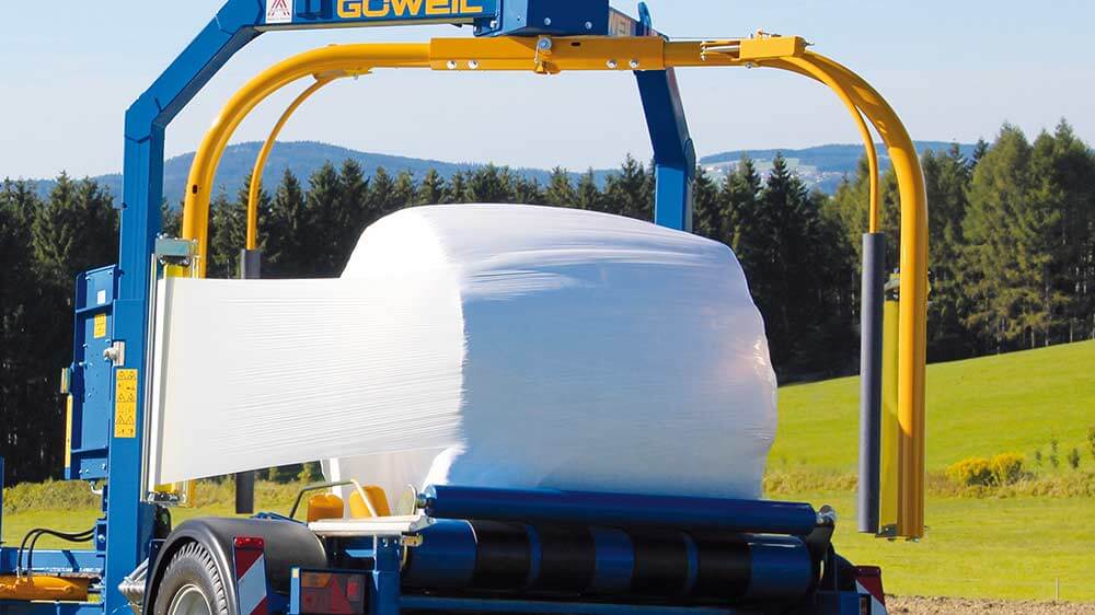 The robust construction and quality craftmanship of the wrapper guarantee an exceptionally long lifetime. Its compact and wide design makes this round bale wrapper extremely agile and perfectly suited for working on slopes. In addition, its low center of gravity allows for a level of maneuverability that is second to none. The standard 380/55-17AW tires ensure uniform weight distribution and are gentle on the soil.