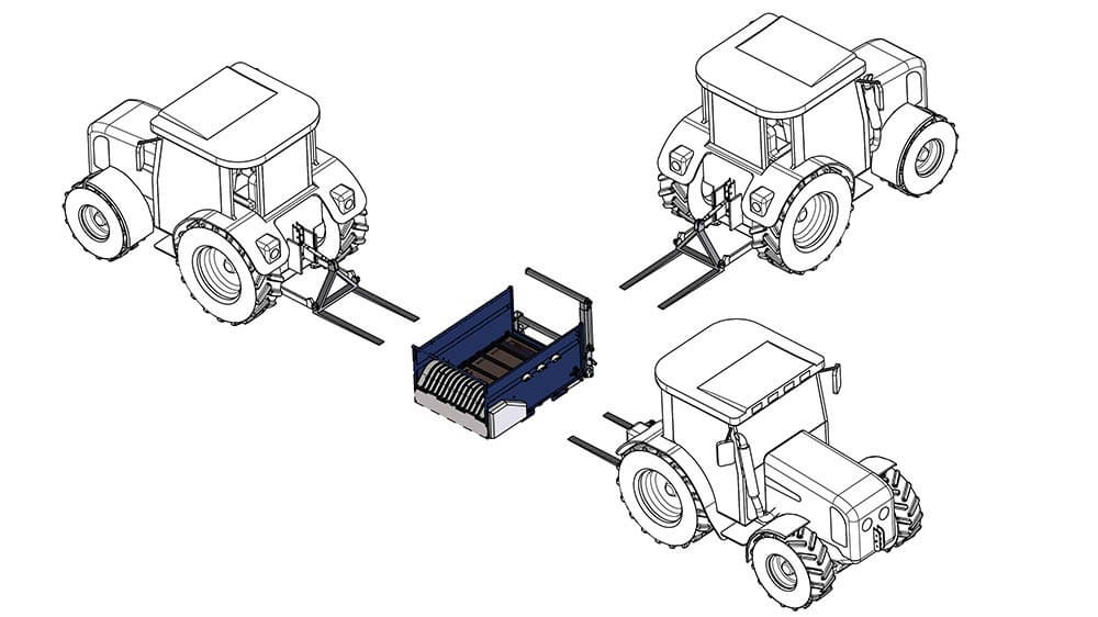 2 yükleme silindiri ve 1 teleskopik silindir ile (yükleme kolu karşı tarafa birkaç el hareketi ile tekrar takılabilir). Çift etkili hidrolik kontrol cihazı gereklidir.