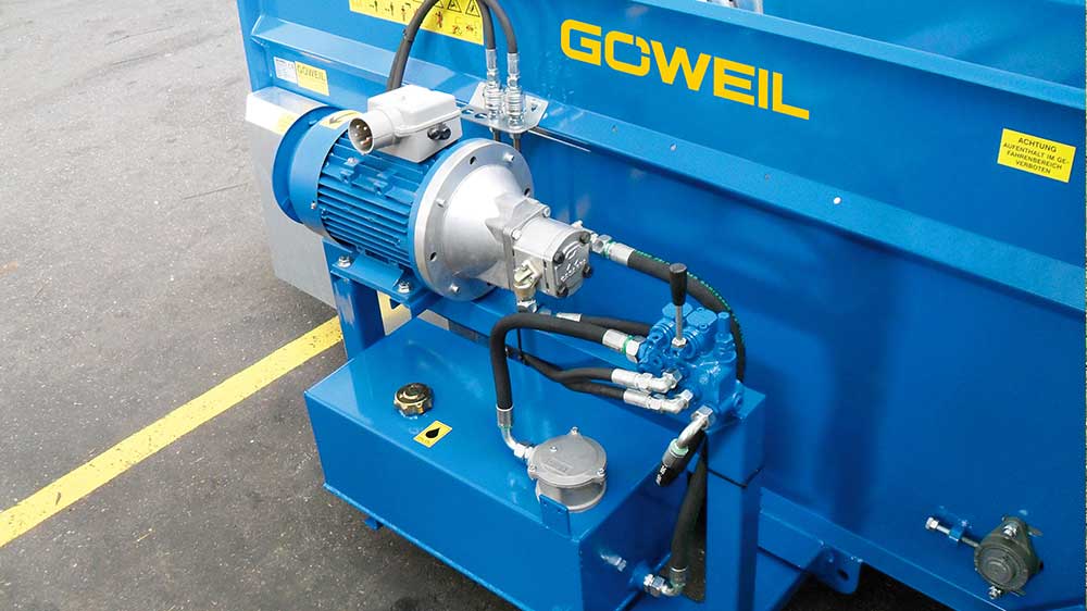 Hidrolik pompa, dönüş filtresi ve hidrolik yağ depolu 4 kW elektrik motoru ile kazıyıcı zemin için kontrol cihazından oluşur.